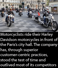 I refer to Harley-Davidson’s customer focused culture as one of the best in the world. It is the longest, continuous manufacturer of motorcycles in the US and has outlived nearly all of its competitors. In the twenty short years since Harley-Davidson started its Owners Group programs, it has grown to over 500,000 members & each of them own at least one motorcycle. The question to ask is: Is there any other consumer product in the world that will prompt customers to travel over several continents to be part of a group experience? Customers and employees alike take great pride in their affiliation with the company and this continues to make Harley-Davidson one of the great success stories of our time.