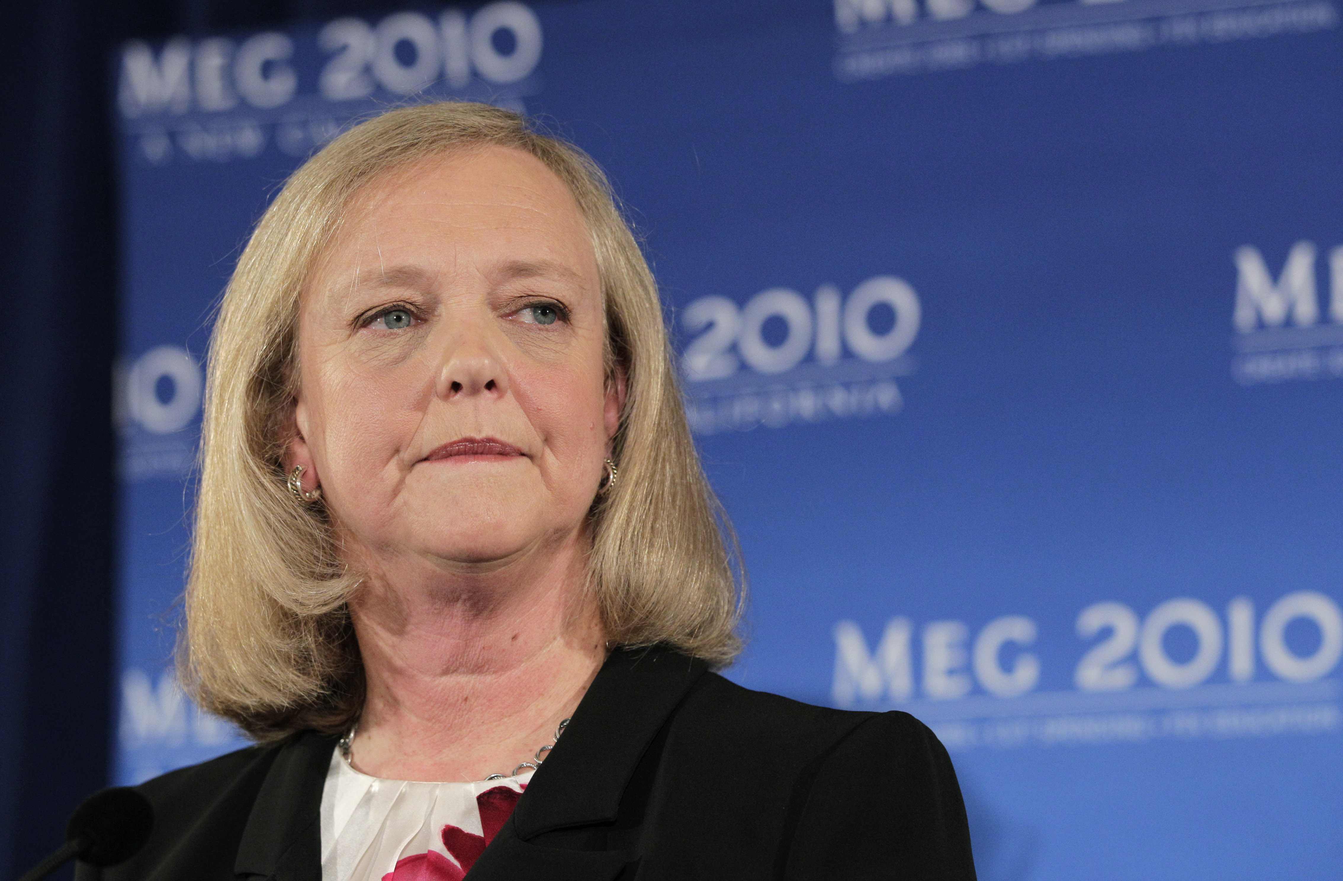FILE - In this Sept. 30, 2010 file photo, California Republican gubernatorial candidate Meg Whitman listens to a question from reporters during a news conference in Santa Monica, Calif., (AP Photo/Jae C. Hong, File)